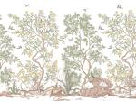 Inspiré des gravures anciennes, en vogue au 19ème siècle, ce dernier esquisse à la manière d’un trompe-l’œil de merveilleux paysages sur les murs de la maison, entre champs de fleurs, savane peuplée d’animaux et panorama sur des sommets enneigés.