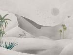 Inspiré des gravures anciennes, en vogue au 19ème siècle, ce dernier esquisse à la manière d’un trompe-l’œil de merveilleux paysages sur les murs de la maison, entre champs de fleurs, savane peuplée d’animaux et panorama sur des sommets enneigés.